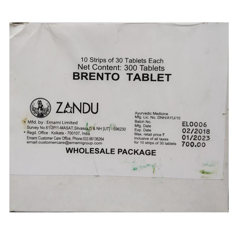BRENTO TABLET?by?ZANDU?is an ayurvedic proprietary product. Brento is made of herbs that are potent brain tonics. Brento is helpful in increasing cognitive functions, memory power, concentration span & ability. It also helps to cope up with the stress and keeps the mind calm and vigilant. It helps you to keep yourself mentally active.?