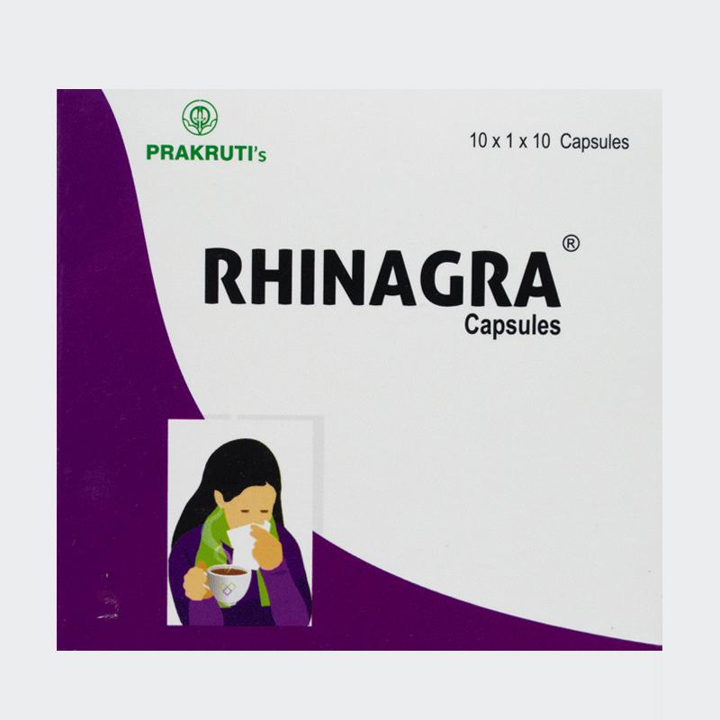 Rhinagra Capsules by Revinto is an ayurvedic proprietary medicine for allergies, respiratory system. It is an analgesic, anti-inflammatory and expectorant.